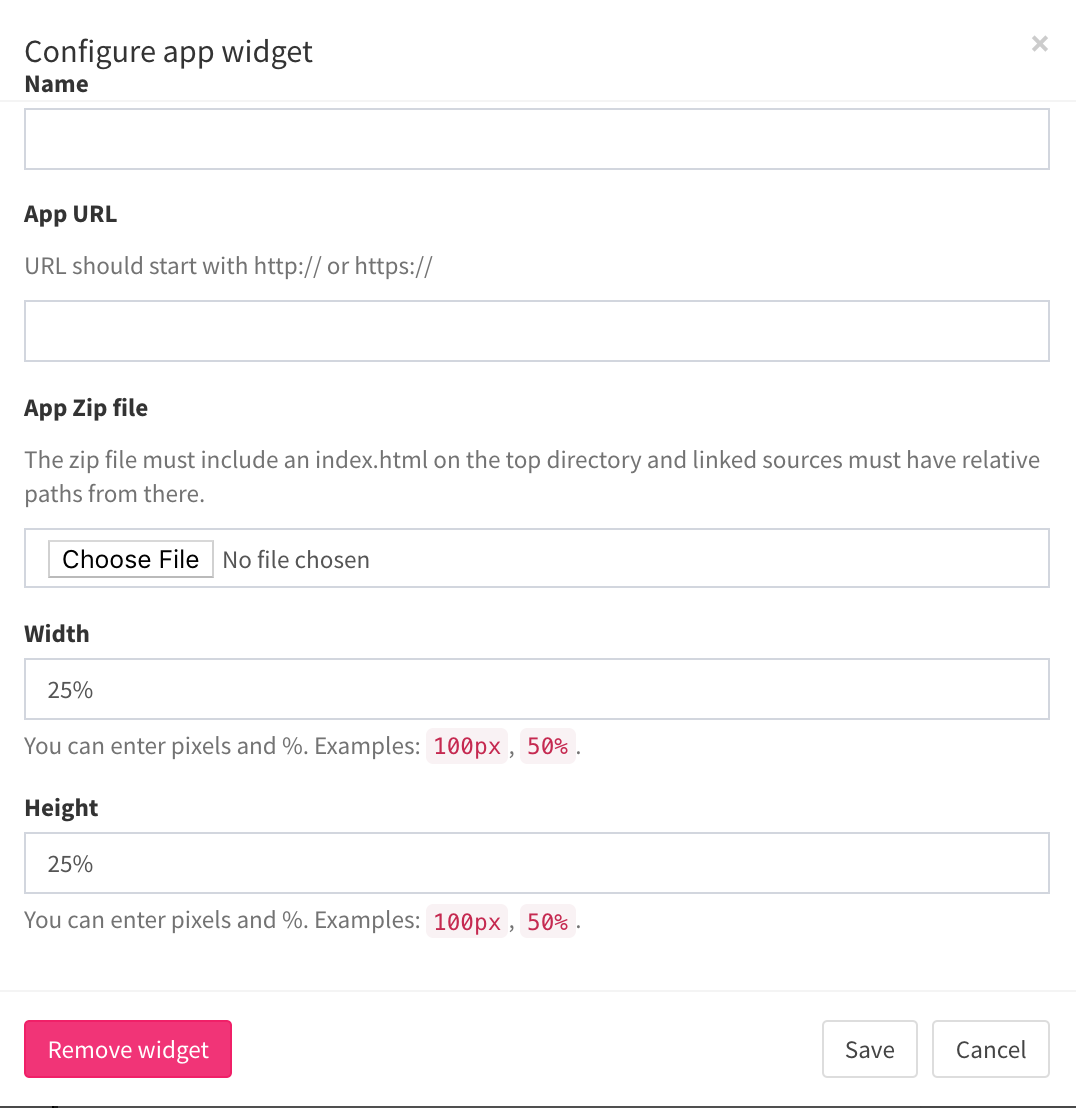 A description of the widget. This is optional, but highly recommended as it will keep your Canvas cleaner and easier to navigate in the future as well as during build.