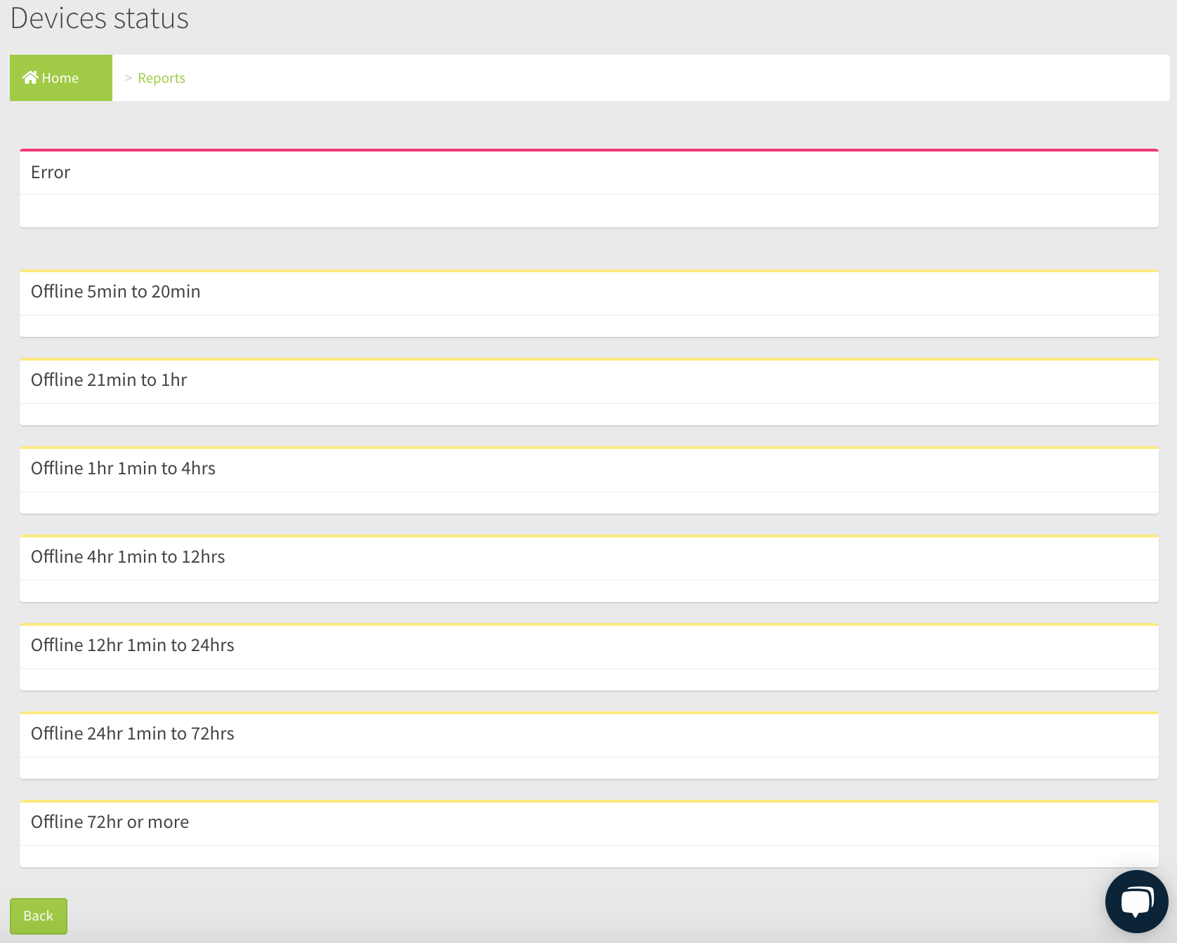 Any device currently not checking into the dashboard will appear in the "Offline" state. Depending on how long the device has been offline for will dictate what section it lands in.