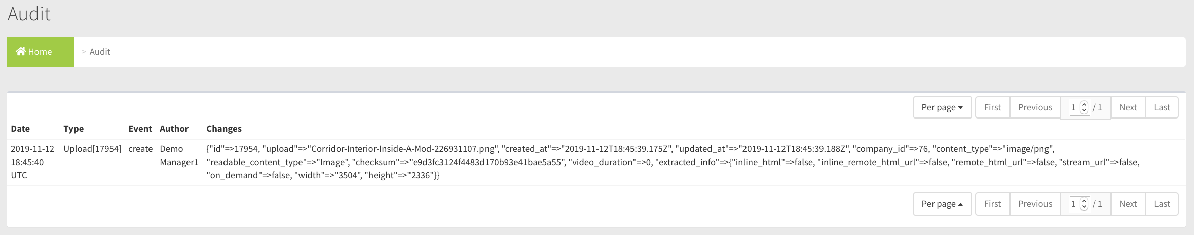 This is the action type. In the example above you can see the File creation from upload.