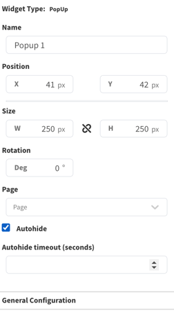How long you want the system to wait until it automatically times out and hides the Pop Up widget.