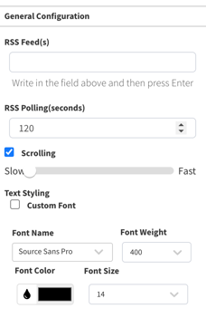 The RSS Feed widget is built to function as an ongoing ticker of consistent messaging to show on the screen.